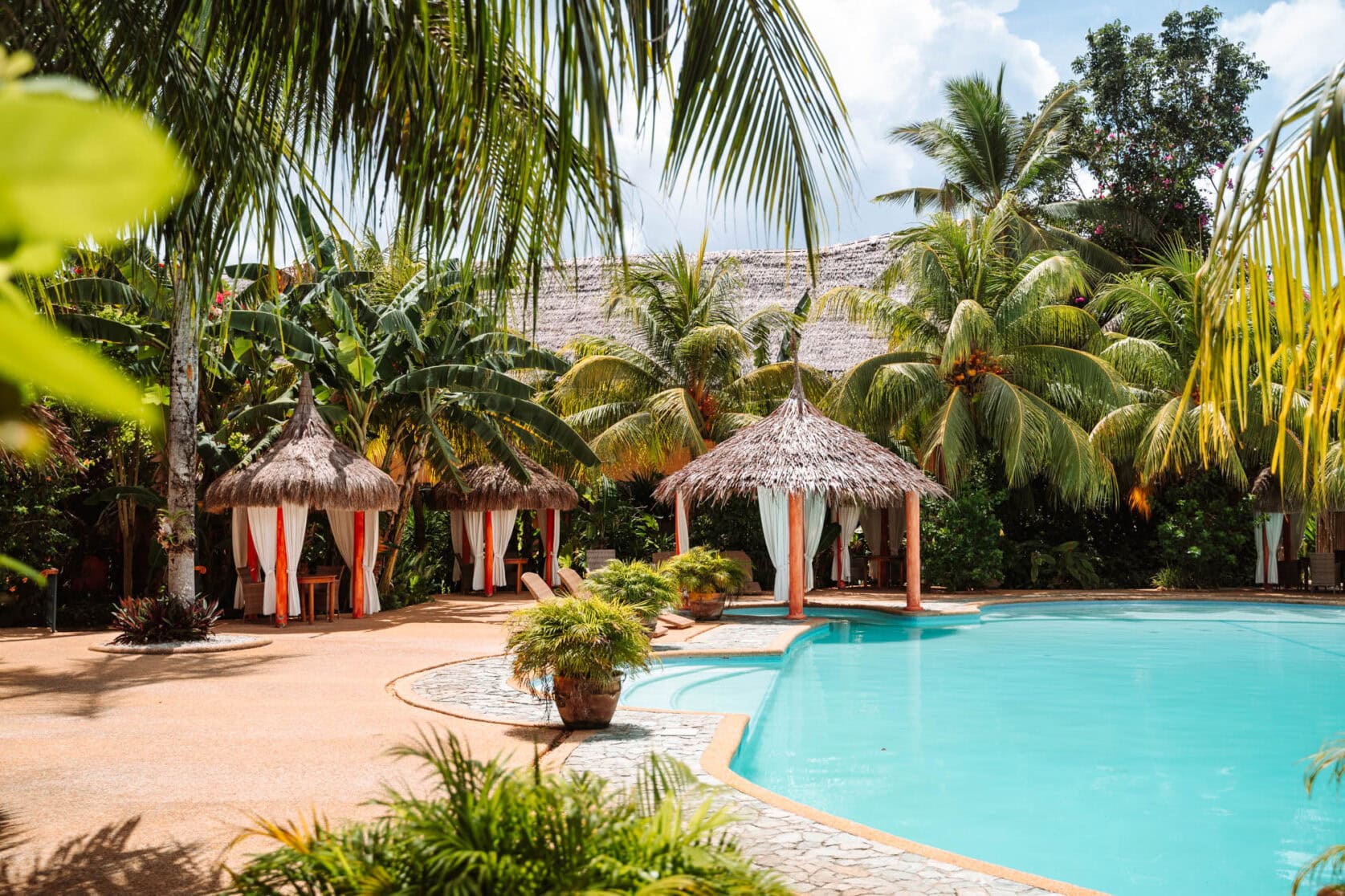 For the ultimate vacation experience, Dolce Amore Resort is the perfect spot. This small-scale resort is part of the Dolce Amore restaurant, which we mentioned earlier in the article. Not only can you eat great here, but you can also stay in style. The resort has a lovely pool, luxurious rooms, and a very central location. Nakabalo Guesthouse also offers a great stay. Situated higher up on the mountain, the views here are fantastic. The infinity pool is the perfect place to relax, especially during sunset. There’s also a pool table, a pétanque court, and the restaurant serves delicious food. Traveling on a smaller budget? The cute cottages at Hola Beach Resort are perfect for a stay. The location is beautiful, right on the beach. You can relax between the palm trees in one of the many hammocks and dive into the sea in between. You’ll sleep in a cozy bamboo bungalow or in the dorm.