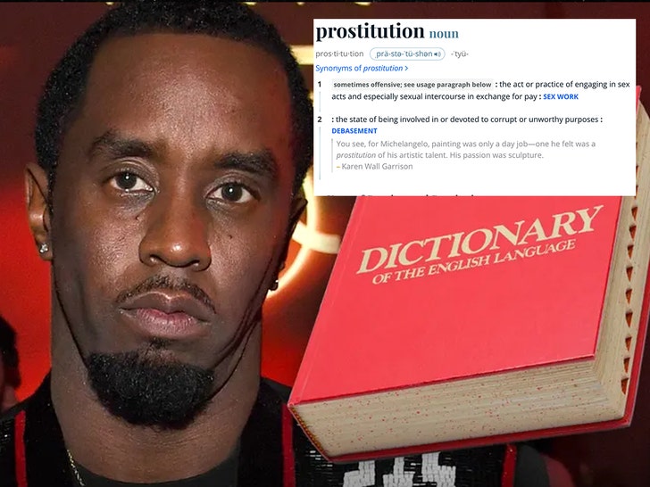 His defense says the court should be using the 1910 definition of prostitution … not the 2025 definition … and Diddy says back in 1910 “a prostitute was a woman who had sex outside marriage.” He says the feds’ position is that prostitution is sex for hire, but the old meaning when the statute was passed was much broader than that.