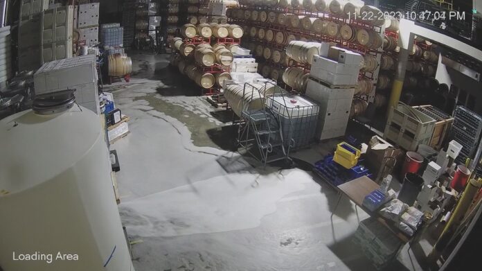 Prosecutors said Griswold committed the act of vandalism just before Thanksgiving 2023, about 14 months after leaving his job at the family-owned winery. Surveillance footage showed him wearing a mask and using an employee access code to enter the barrel room. In six minutes, he opened valves on two tanks, releasing roughly 2,300 gallons of wine before slipping out the back door.