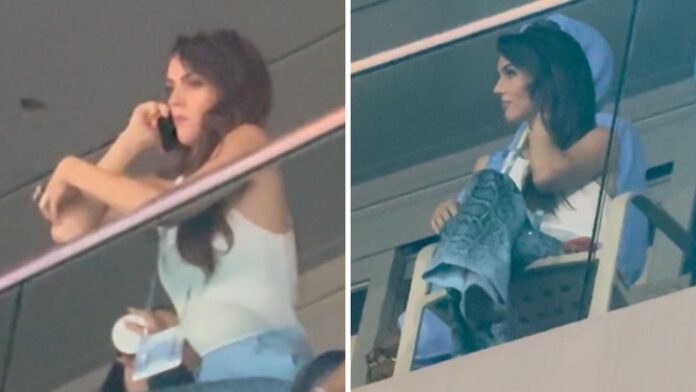 She seemed nervous throughout — and appeared to phone a friend to get her mind away from the action on the field.