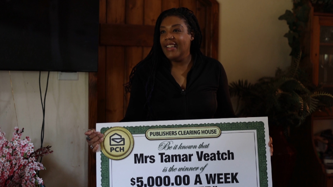 In February 2021, Publishers Clearing House showed up on Veatch’s doorstep in Cottage Grove, Ore., with balloons, a big check and a promise: $5,000 a week for the rest of her life.