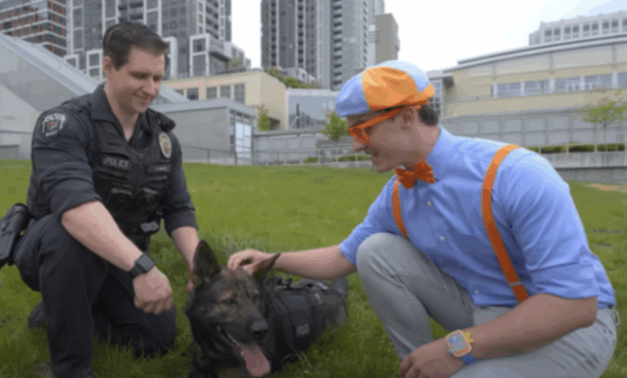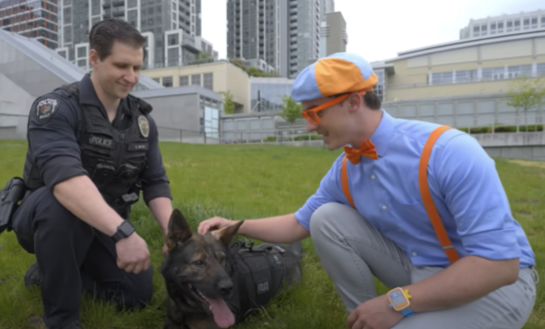 Titled “Blippi Meets Police Heroes & Their K9 Dog!”, the episode introduces Blippi’s 25.5 million subscribers to some of the tools officers use daily to keep Bellevue safe. The segment includes a jiujitsu demonstration, tours of a police car and motorcycle, and an introduction to Kole, one of the department’s three K9 officers.