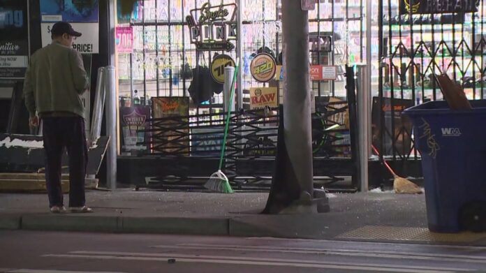SEATTLE — Multiple suspects are wanted after a smash-and-grab robbery at a smoke shop in Seattle’s Greenwood neighborhood early Monday morning.