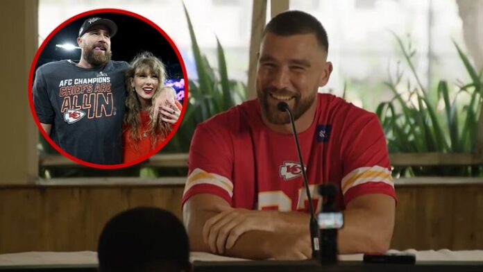 No matter what country Travis Kelce‘s in, his love for Taylor Swift is apparent … as he just raved about his pop star fiancée to Brazilian media members.