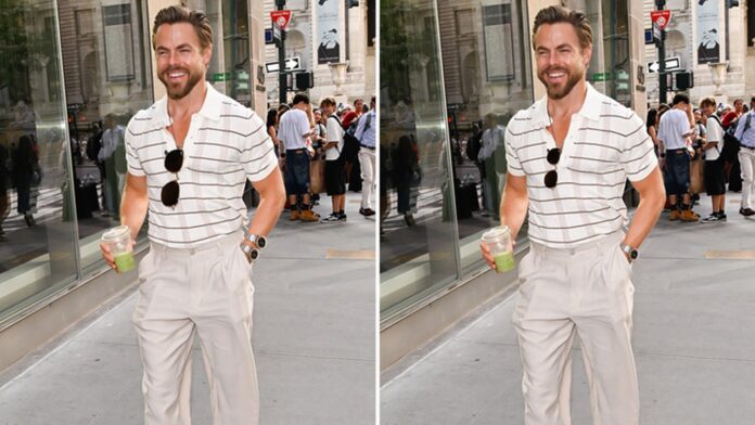 The dancing pro was in New York City earlier this week — making the media rounds to promote his big return as judge on “Dancing With The Stars.” Hough hunk-ed out in a form-fitting polo and khaki trousers.